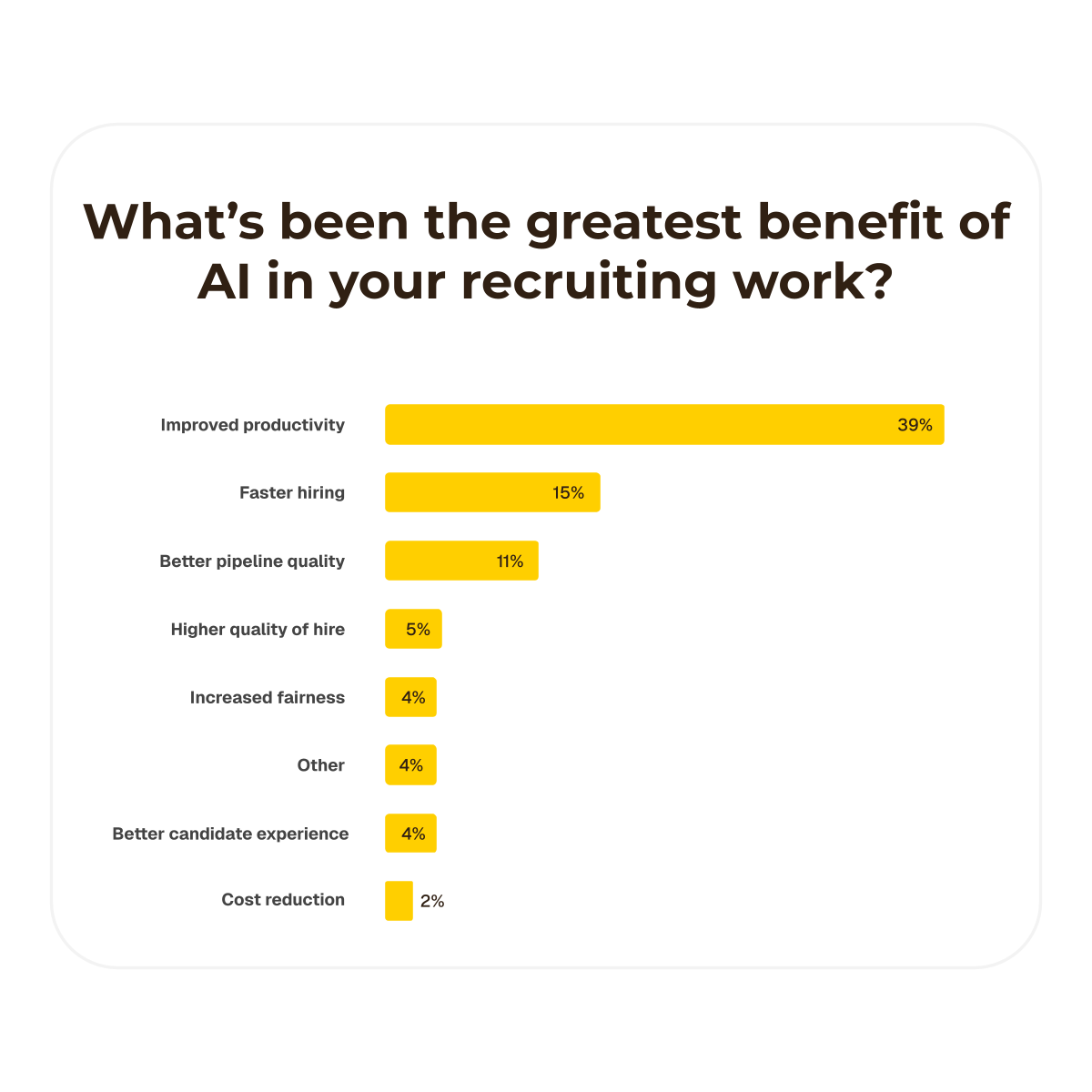 In our 2025 benchmark study in partnership with Elly, most respondents told us they use AI daily or weekly. That's a clear market signal. Put simply, AI is now a core part of how recruiting work happens.